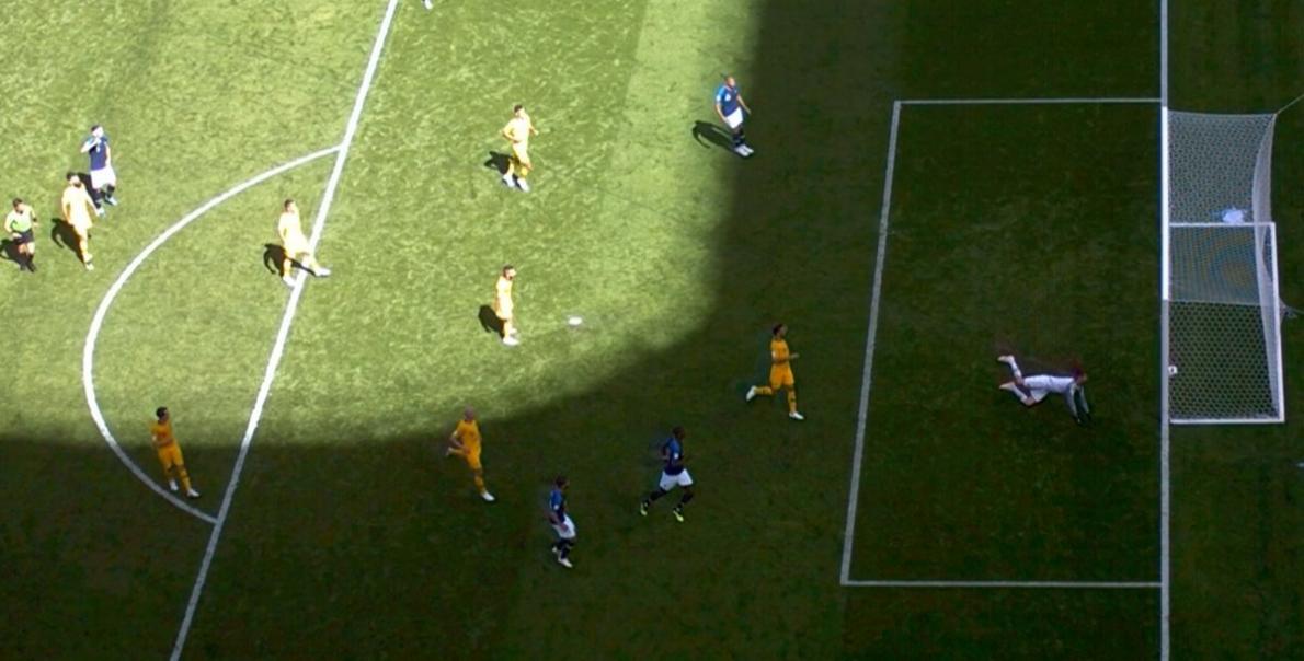 На 80-й минуте мяч после касания 25-летнего хавбека ударился о перекладину, после чего пересек линию ворот.