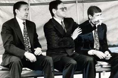 20 червня 1993 року київські динамівці, перемігши «Кремінь», стали чемпіонами України (на фото тренерський штаб команди на чолі з Михайлом Фоменком).