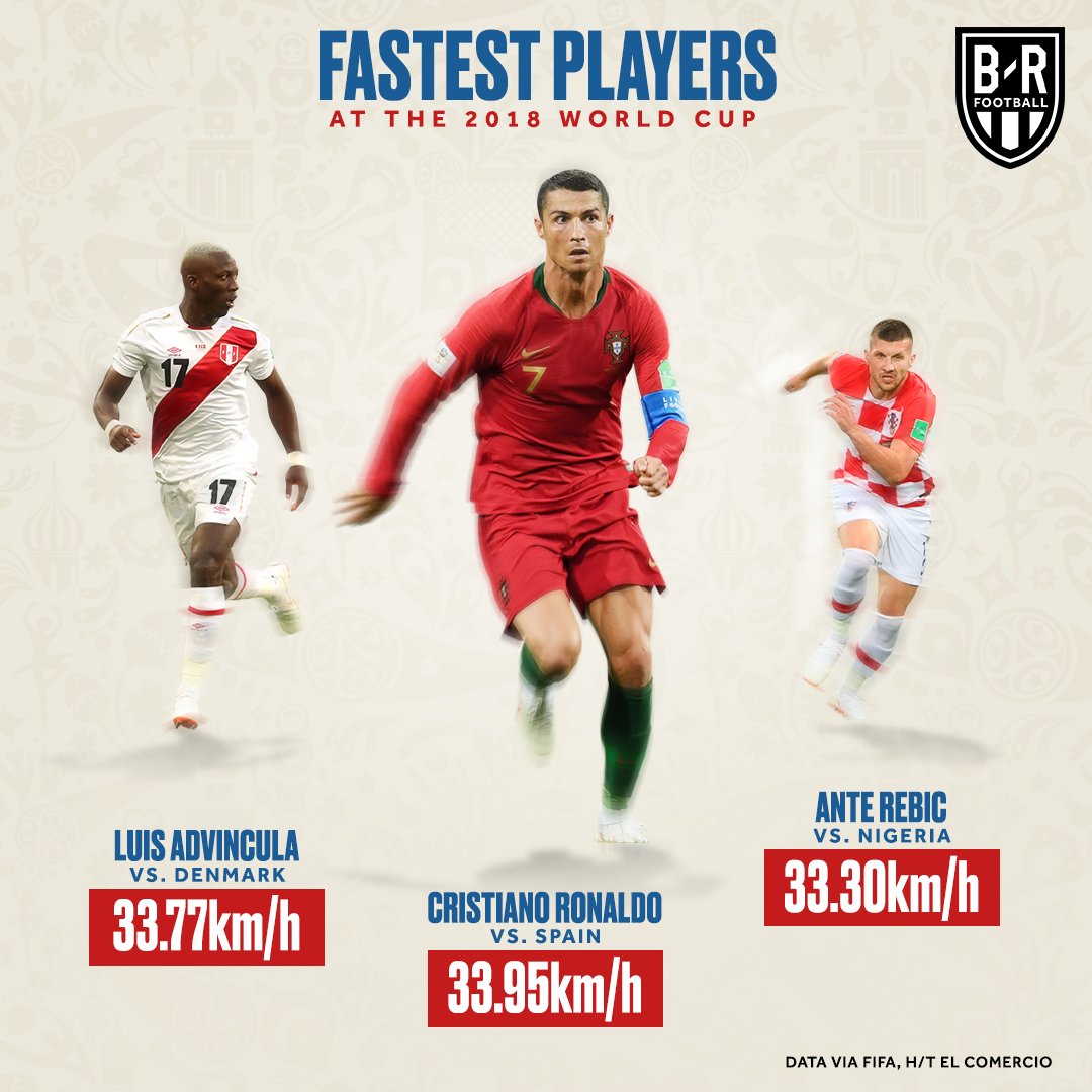 Форвард сборной Португалии Криштиану Роналду продемонстрировал самую высокую скорость в матчах чемпионата мира 2018-го года.