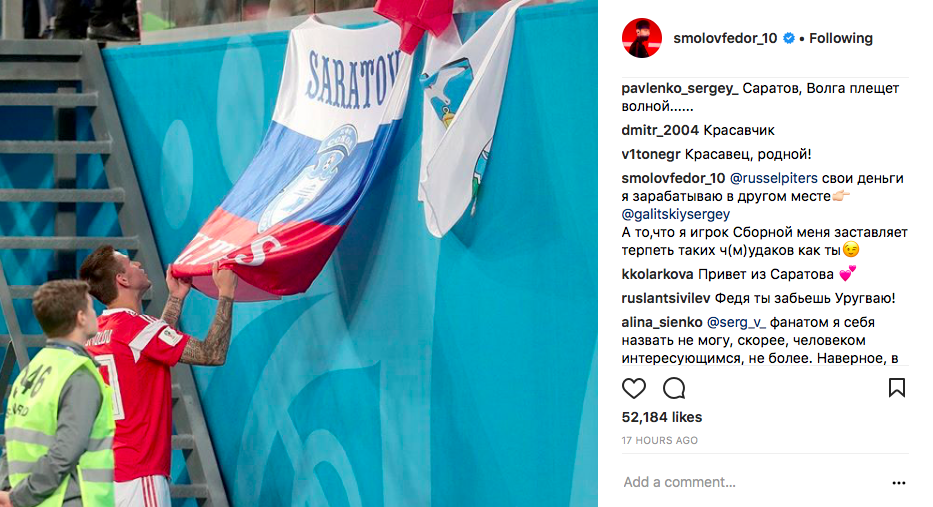Нападающий сборной России Федор Смолов отреагировал на критику болельщика сборной России.