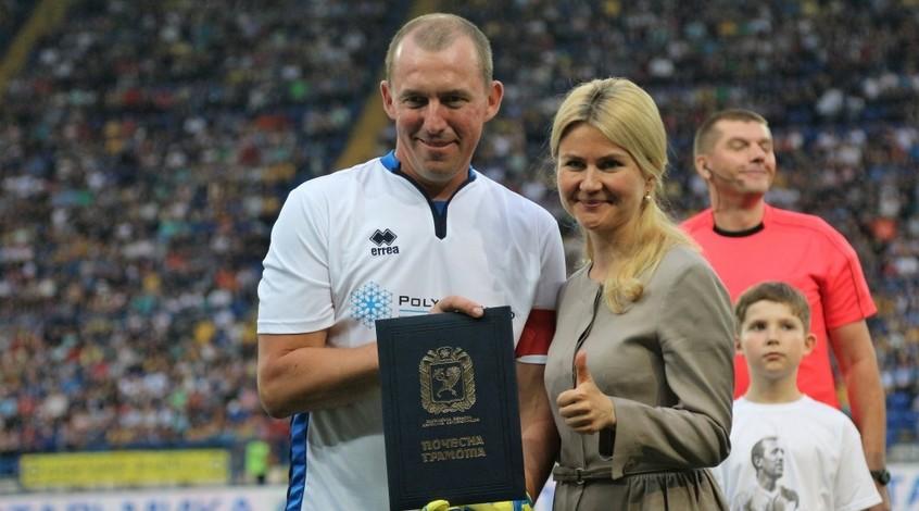 Перед началом матча перед зрителями выступила Юлия Светличная - губернатор Харьковской области. Она сказала несколько напутственных слов, вручила Горяинову благодарность от ХОГА, а также сообщила, что будет инициировать награждение Александра Сергеевича орденом "За заслуги". "Именно такие люди пишут историю украинского футбола. Именно такими людьми заслуженно гордится Харьковская область", - перед тем матчем сказала Светличная.