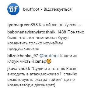 "Кадемин – клоун чистый, сепар", – написал футболист в комментарии к посту страницы "Брутальный футбол" в Instagram.