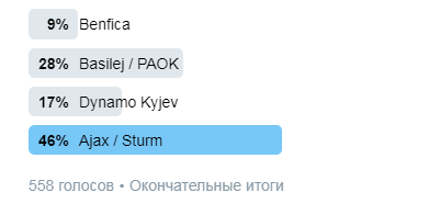 болельщиков хотело, чтобы их клуб попал на победителя пары "Аякс" -
