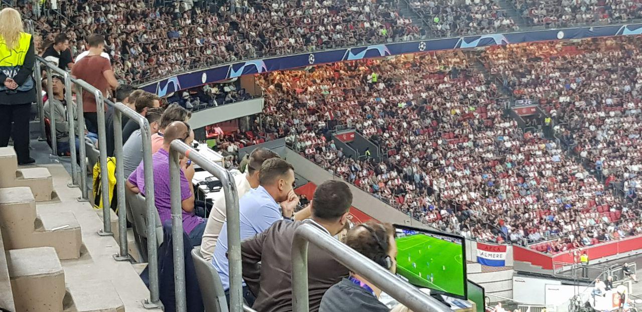 Шевченко вместе с Левченко и итальянским агентом наблюдает за матчем "Аякс" - "Динамо