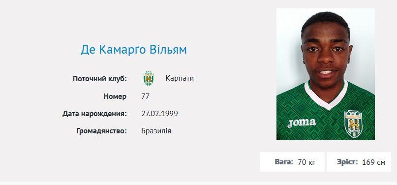 Перед сегодняшним матчем с "Динамо" "Карпаты" внесли в заявку на сезон бразильского нападающего Вильяма Де Камарго 1999-го года рождения.
