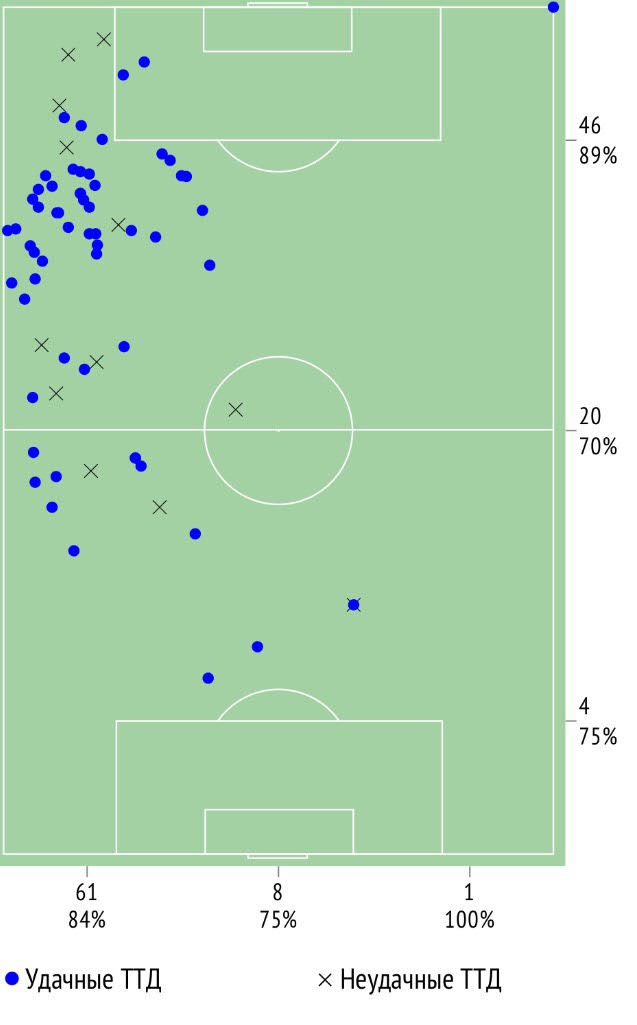 Один из них, кстати, как раз и соорудил Коноплянка, но мяч после удара его партнера попал в штангу. Всего у украинца было две острые передачи и шесть фланговых прострелов. Евгений совершил пять удачных обводок, но момент для выстрела нашел только один. В сумме он выполнил 70 ТТД при браке в 17% — ошибок было не так уж и много. В том числе и в единоборствах — восемь выигранных дуэлей из 12-ти. Рейтинг эффективности игры украинца составил 299 баллов, а это третий результат в команде и лучший за последние семь матчей в Шальке. На протяжении всего этого времени Евгений Коноплянка не забивает голы и не отдает голевые передачи в Гельзенкирхене. Сухая серия украинца в клубе насчитывает уже 493 минуты. Возможно, именно поэтому наставник Кобальтовых Доменико Тедеско и поменял полузащитника сборной Украины. Хотя вопросы могут возникнуть и по игре в защите — у Коноплянки оказалось всего четыре оборонительных единоборства, а также по общей готовности (в первом тайме было 50 ТТД, а за 24 минуты второго — 20). В общем, ситуация в немецком клубе у украинца сложная, но называть эту игру провальной для него никак нельзя. Посмотрим, как будет в субботу, когда в Гельзенкирхен приедет Майнц.