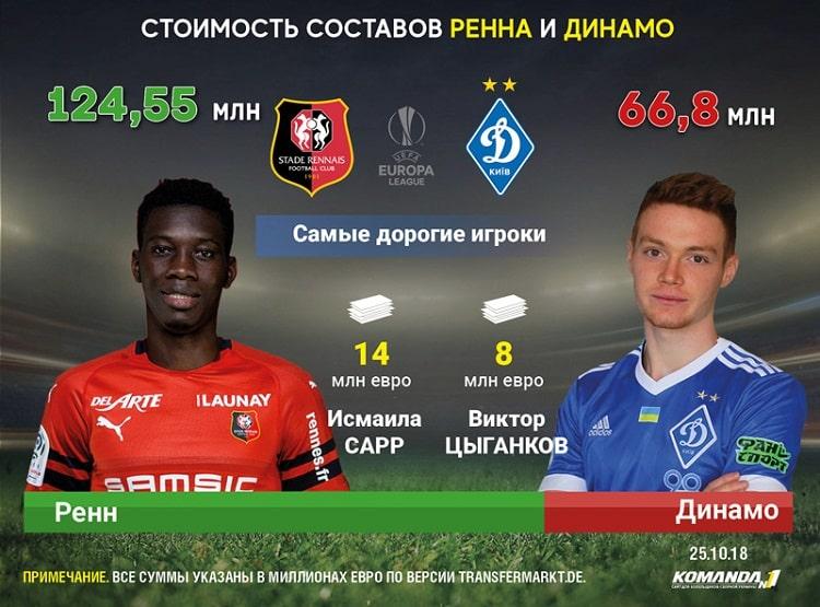 Лига Европы. "Ренн" превосходит киевское "Динамо" на 57,75 млн евро