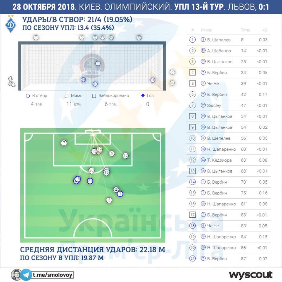 Средняя дистанция ударов - 22.18 метра, что на пару метров больше средней по сезону в матчах УПЛ.
