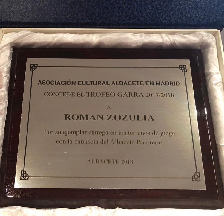 Как сообщает официальный сайт Альбасете, украинский нападающий команды Роман Зозуля получил престижный приз Trofeo Garra.