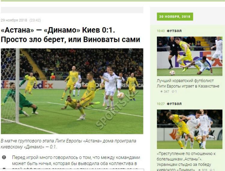 Во всех СМИ Казахстана, которые zbirna.com удалось промониторить, буквально сквозит обида от вчерашнего проигрыша местной Астаны киевскому Динамо (0:1) в пятом туре группового этапа ЛЕ.