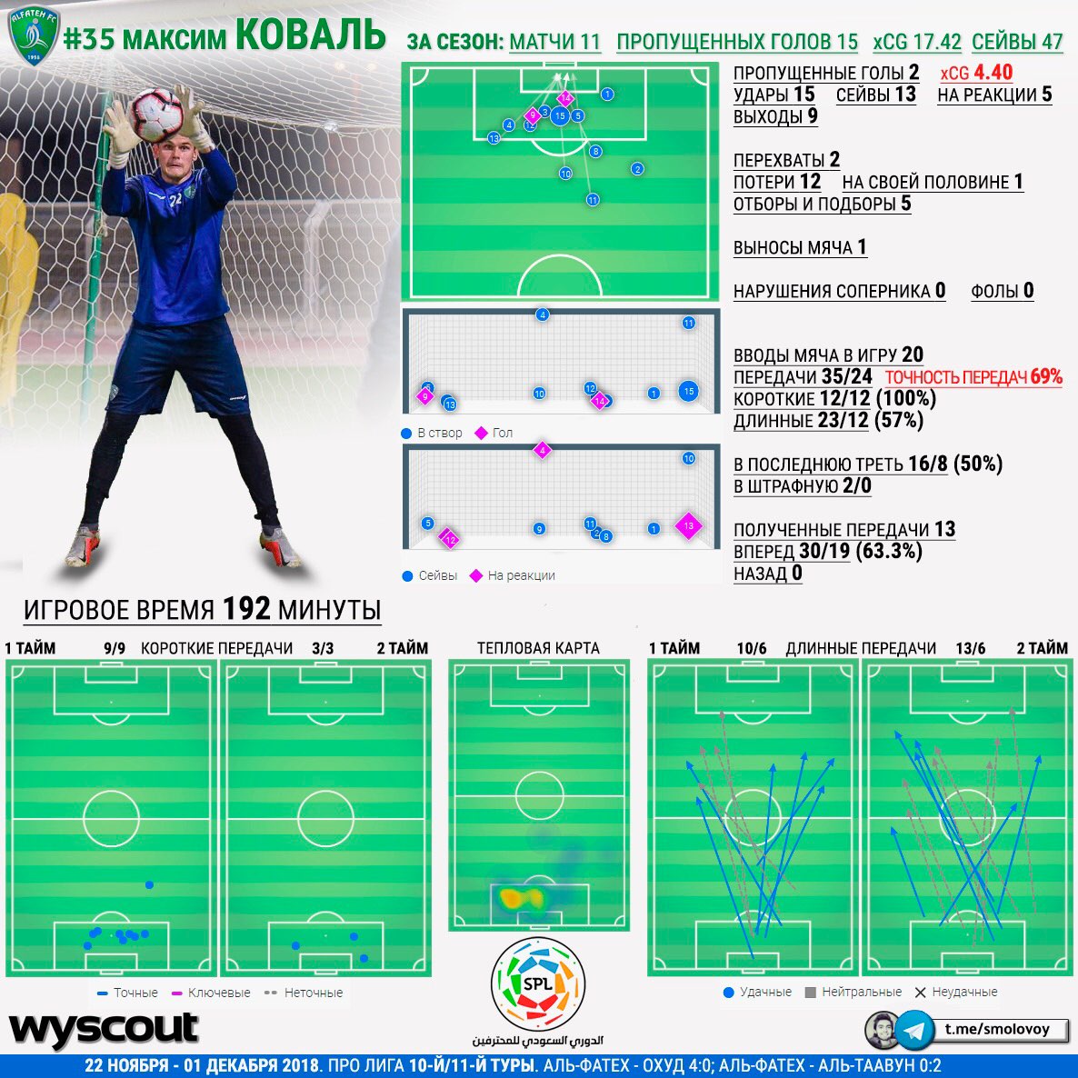 Например, в матче против Аль-Таавуна Коваль отразил удар с 11 метров. Это уже второй не забитый пенальти в его ворота в сезоне.