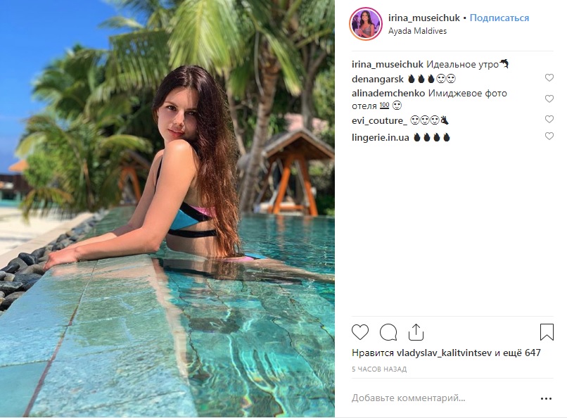 Дівчина хавбека Динамо Владислава Калітвінцева, який на правах оренди виступав у Зорі та Чорноморці, опублікувала фото з відпочинку на Мальдівах.