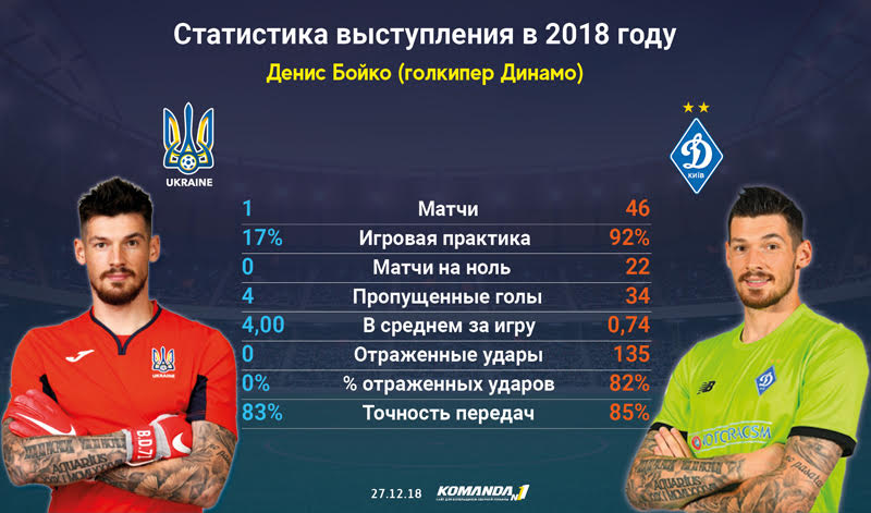 Подводим итоги выступления футболистов сборной Украины в 2018 году. На очереди — голкипер Динамо Денис Бойко.