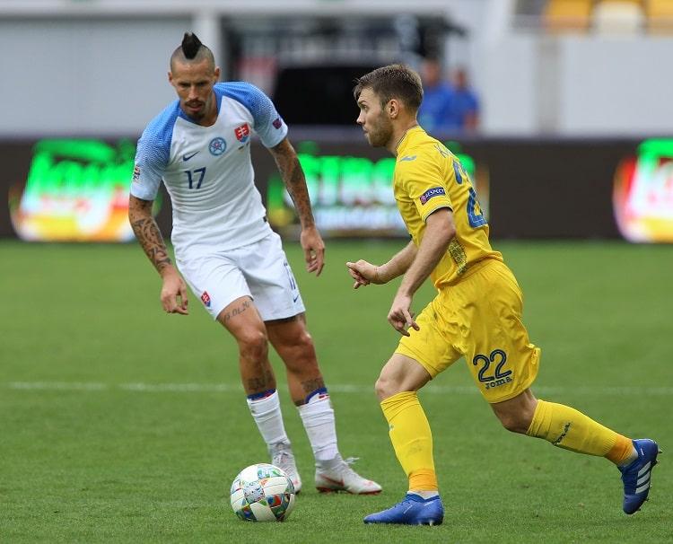 На позиции правого защитника сборной Украины он дебютировал еще в конце 2017 года, но тогда казалось, что это была разовая акция. Впрочем, в 2018-м именно полузащитник Зари Александр Караваев стал основным игроком данного амплуа. За минувший год он сыграл в национальной команде все 10 матчей и стал одним из самых полезных исполнителей сине-желтых в Лиге наций!