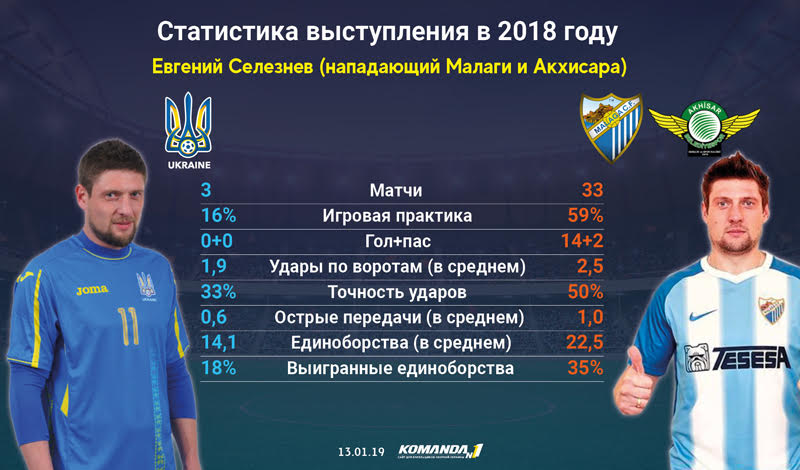 zbirna.com подводит итоги выступления футболистов сборной Украины в 2018 году. На очереди — нападающий Малаги Евгений Селезнев.