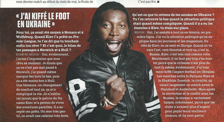 «Даже несмотря на то, что мои дела в Украине не всегда шли так, как мне бы того хотелось, я до сих пор с теплотой и ностальгией вспоминаю свою украинскую эпопею, — признался Мбокани бельгийским журналистам. — Так получилось, что я попал в Украину в тот самый момент, когда политические страсти там максимально накалились. Все эти революционные события я имел возможность наблюдать прямо из окон моей квартиры, находившейся в самом центре Киева. Народ жаждал перемен, вышел на улицы и добился своего. Украинцы — замечательные люди! Добрые, веселые, трудолюбивые, и они заслуживают лучшей жизни.