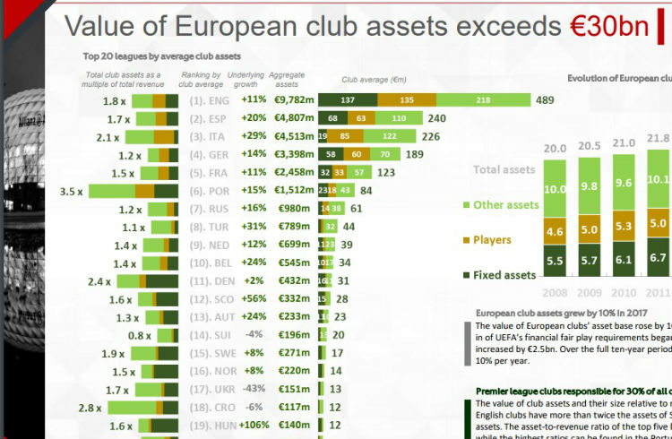 В отчете за 2017 финансовый год общая стоимость активов клубов украинской Премьер-лиги оценивается в 151 млн евро.