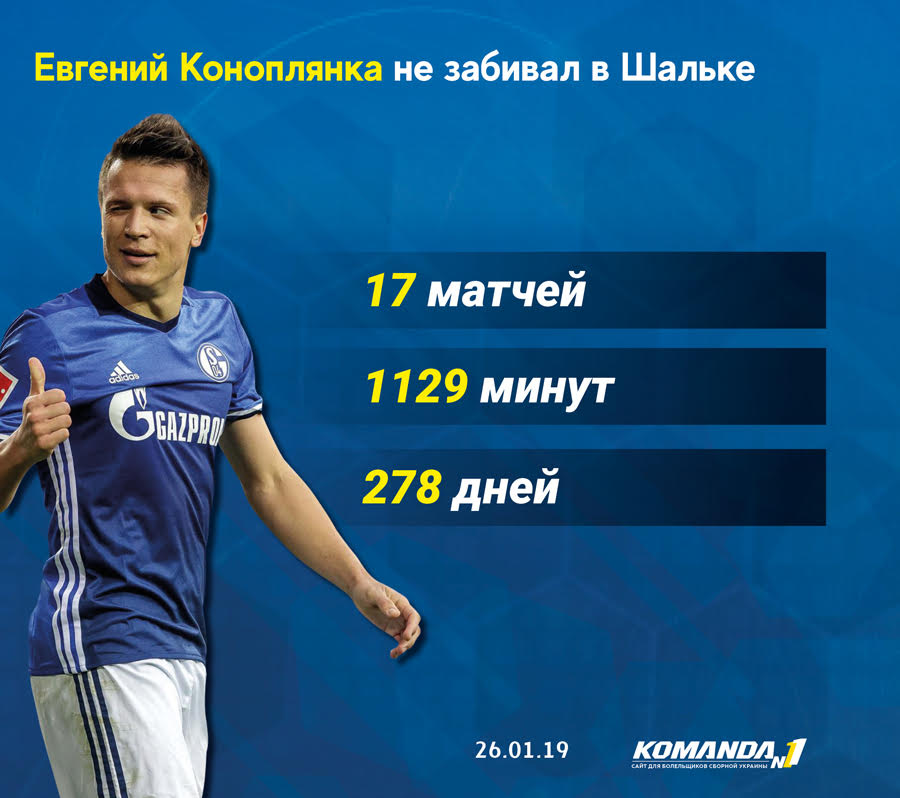 Сухая серия Евгения Коноплянки в Шальке составляла 17 матчей и 1 129 минут, сообщает zbirna.com.