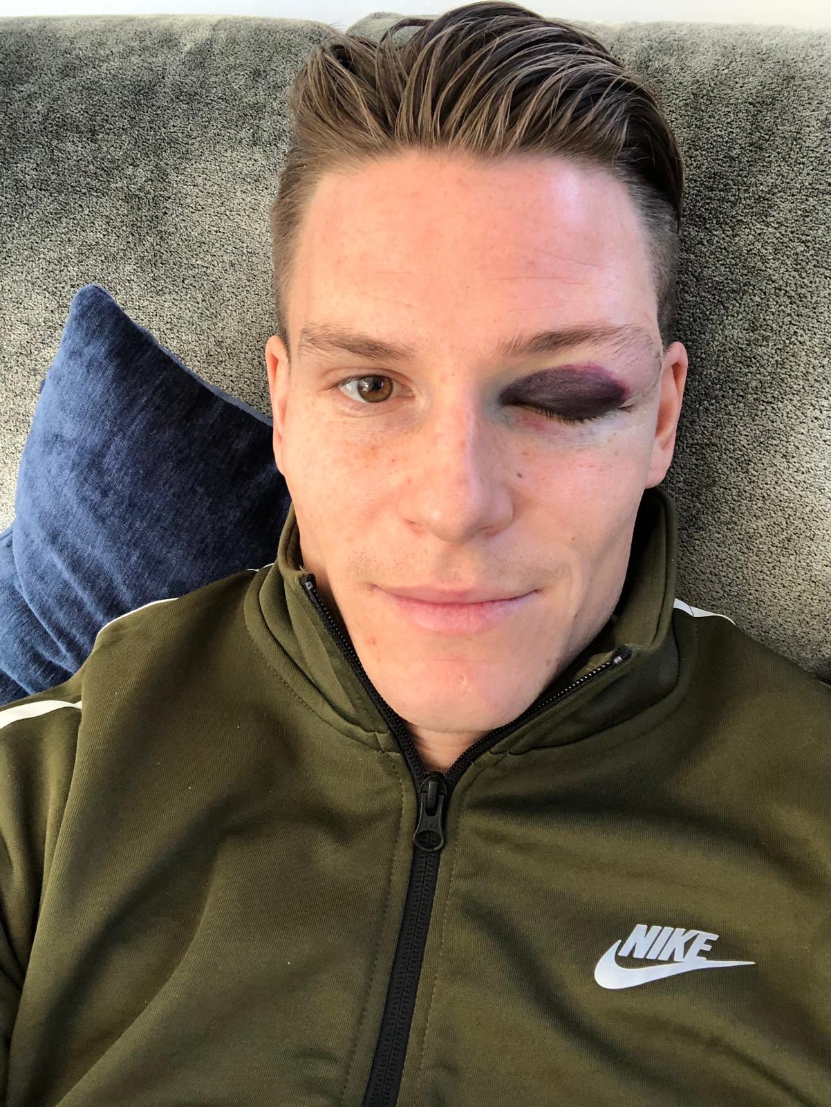 Нападающий «Валенсии» Кевин Гамейро на своей странице в «Твиттере» опубликовал фото с синяком под глазом, полученным в выездном матче 22-го тура испанской Примеры с каталонской «Барселоной» (2:2).