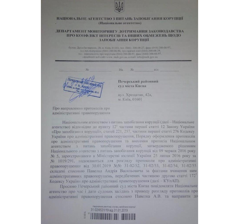 В соответствии с документом, НАПК обвиняет Павелко в: