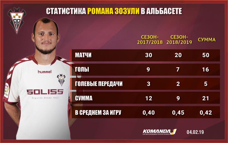 Результативная игра нападающего Альбасете Романа Зозули в последних матчах не оставляет тренерам сборной Украины выбора — в настоящий момент им, по всей видимости, нужно обратить свой взор на испанскую Сегунду. В минувший уик-энд один из опытных отечественных форвардов провел там юбилейный 50-й матч и второй раз в своей пиренейской карьере оформил дубль. В национальную команду Зозулю, впрочем, в последний раз вызывали еще осенью 2016 года, хотя свой бомбардирский минимум он держал и в минувшем сезоне. Статистика игровых показателей нападающего не говорит о том, что сейчас он резко прибавил. Повысил реализацию голевых моментов — это да. Но смущает точность передач, а этому компоненту в сборной Андрея Шевченко уделяют много внимания. Впрочем, от форвардов нужны голы, а в 2018 году они забили за сине-желтых лишь один мяч. Опыт Романа Зозули в нынешней кадровой ситуации лишним точно не будет, но решать, конечно же, тренерам.