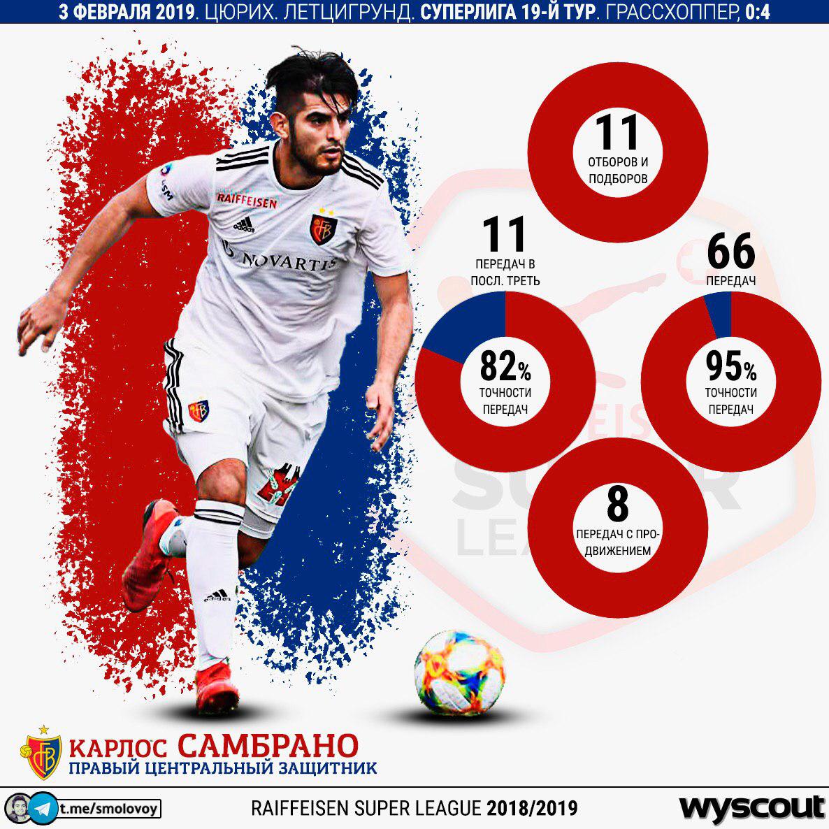 Базель в рамках 19 тура обыграл на выезде Грассхоппер - 4:0. Команде Карлоса существенно это ничем не помогло. После 19 поединков чемпионата они отстают от лидера на...19 очков.