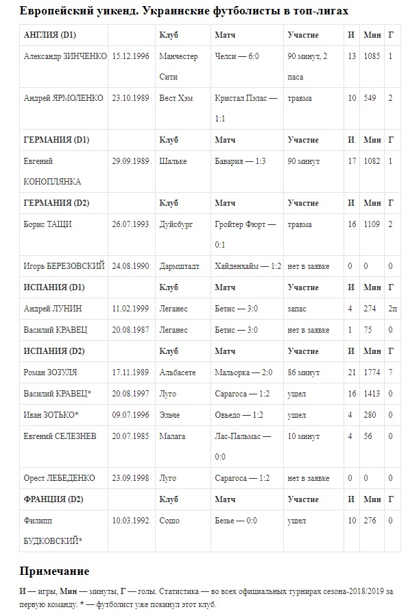 Европейский уикенд: победный гол Кравца, две голевые передачи Зинченко