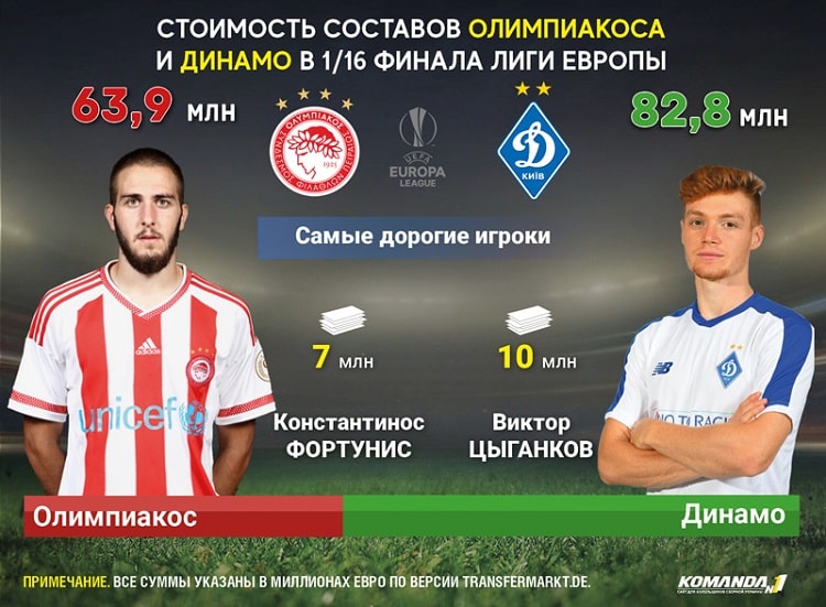 "Олимпиакос" - "Динамо". У состава киевлян преимущество почти в 19 млн евро