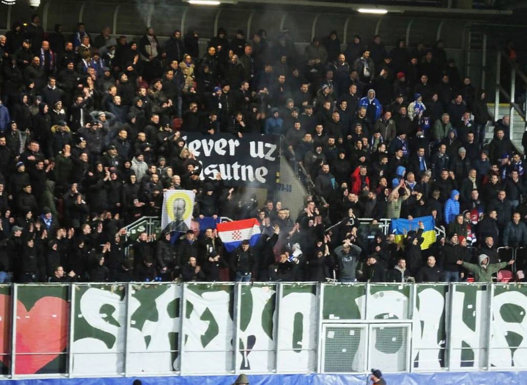 Ультрас "Динамо" передали флаг Украины хорватским болельщикам, которые вывесили его на матче Лиги Европы