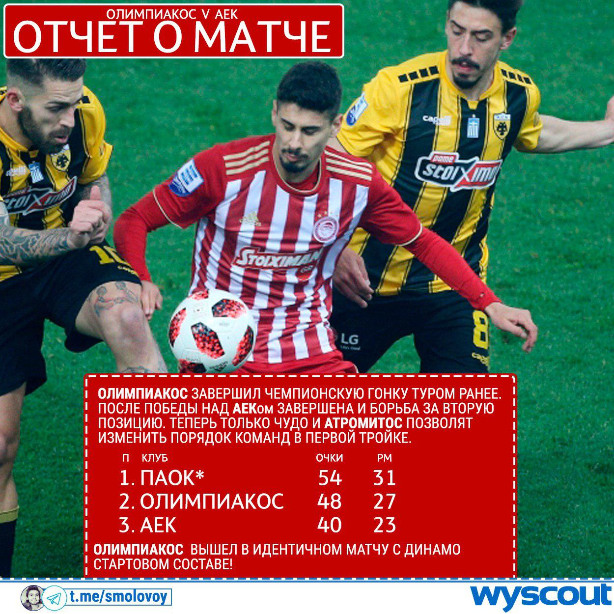Блогер Михаил Смоловой - о вчерашнем матче соперника "Динамо" по Лиге Европы "Олимпиакоса" против АЕКа.
