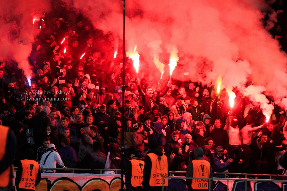 Перфоманс ультрас "Динамо" перед матчем с "Олимпиакосом"