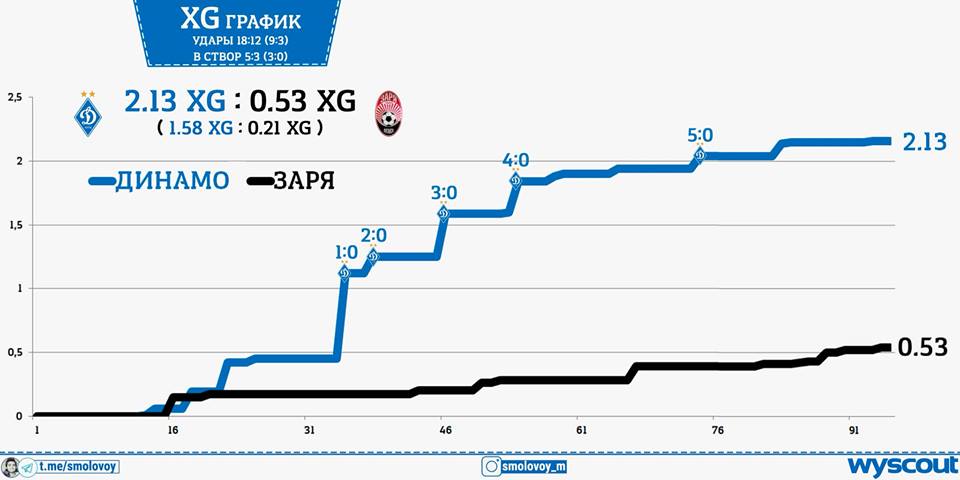 Из 18 ударов Динамо собрались всего 2.13 ожидаемых голов.