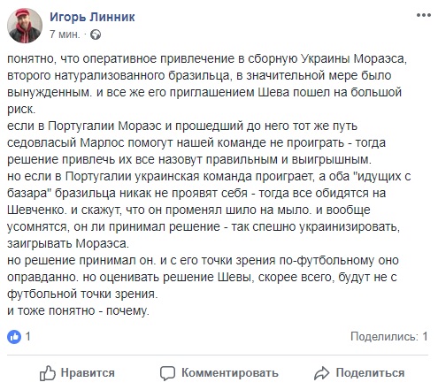 И тоже понятно - почему, - написал Линник на своей странице в Фейсбуке.