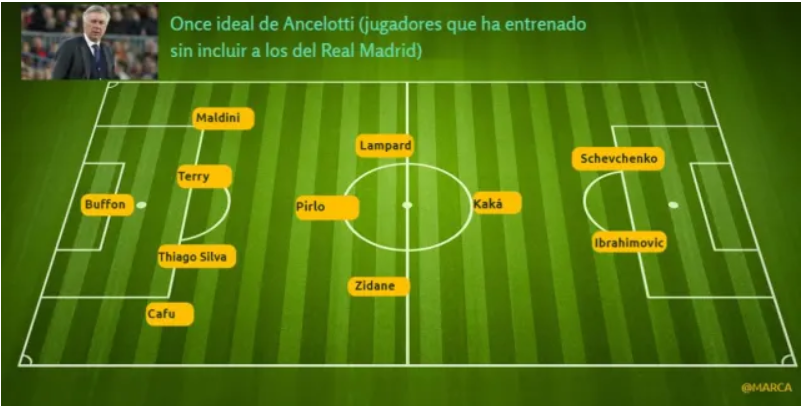 Среди ряда выдающихся футбольных личностей есть мнение и Карло Анчелотти. В его сборной нашлось место и для украинца Андрея Шевченко. Нынешний наставник сборной Украины занял место в нападении вместе с Златаном Ибрагимовичем.