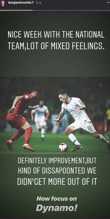 - Хорошая неделя со сборной, но много смешанных чувств. Конечно, есть улучшения, но отчасти и разочарование, ведь мы не получили больше. Теперь сосредоточиться на «Динамо», - написал Вербич на своей странице в Инстаграме.