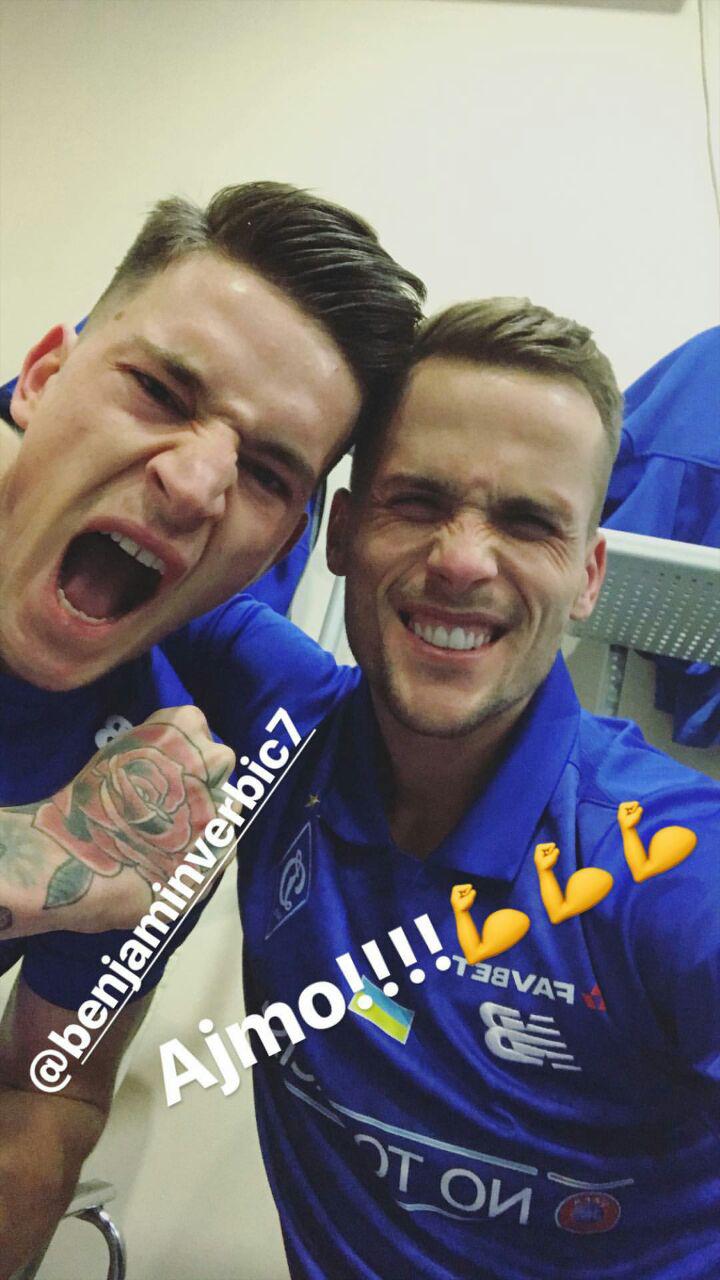 Защитник "Динамо" Томаш Кендзера в своем Instagram поделился совместным фото с Беньямином Вербичем после победы над "Зарей".