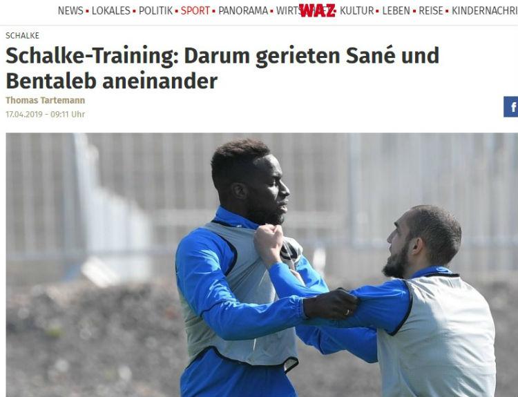 На сегодняшней тренировке Шальке нашего Евгения Коноплянки сцепились защитник Салиф Сане (рост - 196 см) и хавбек Набиль Бенталеб (рост - 187 см).