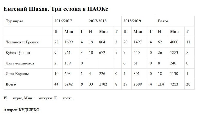Как Евгений Шахов провел три сезона в ПАОКе: цифры и трофеи