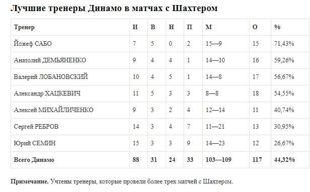 Хацкевич в этом рейтинге тренеров за всю историю проигрывает только трем наставникам. Но за 10 последних лет показатели нынешнего рулевого Динамо в матчах с Шахтером – однозначно лучшие.