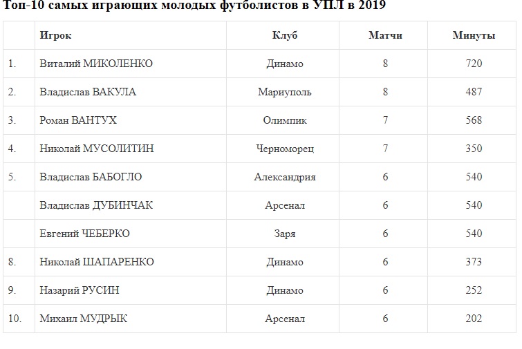 1.В 2019 году в одном туре чемпионата на поле выходит в среднем по 16 молодых украинских футболистов. До деления команд на шестерки было по 15, а на втором этапе стало почти по 18.