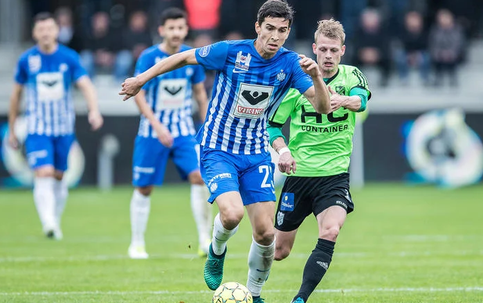 Украинский форвард Юрий Яковенко забил мяч за "Эсбьерг" в матче чемпионата Дании против "Оденсе".