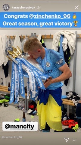 Український боксер Тарас Шелестюк привітав футболіста "Манчестер Сіті" Олександра Зінченка з тим, що той став чемпіоном Англії 2019 року.
