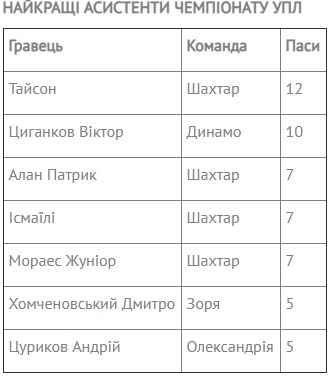 Динамівець Віктор Циганков минулого туру зробив один результативний пас, що дав йому змогу на один пункт наблизитися до лідера сезону – бразильця Тайсона. До завершення сезону чотири тури, і є впевненість, що киянин цілком може наздогнати донеччанина!