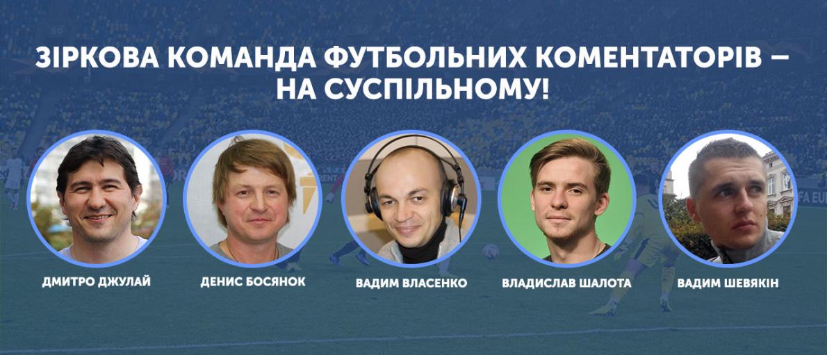 Чемпіонат світу з футболу серед юнацьких збірних U-20 (Польща, 2019), який транслюватиме наживо суспільний телеканал UA: ПЕРШИЙ, коментуватимуть відомі футбольні коментатори Дмитро Джулай і Денис Босянок, спортивні коментатори Суспільного — Вадим Шевякін та Владислав Шалота, а також коментатор Суспільного радіо Вадим Власенко.