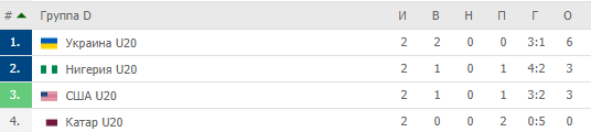 В группе D США одержали победу над Нигерией и окончательно запутали ситуацию в группе. У двух команд теперь по 3 пункта, в то время как лидирующая Украина имеет 6. Три команды претендуют на проход.