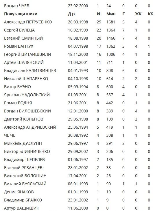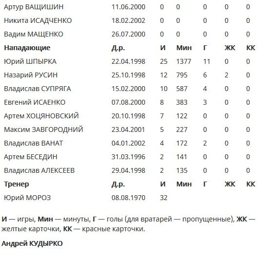 Стоит также отметить, что в основе столичного клуба в этом сезоне сыграла огромная группа футболистов молодежного возраста (по регламенту — 1997 год рождения и моложе). Многие уже давно в основе, некоторые только попали в нее, но факт остается фактом.