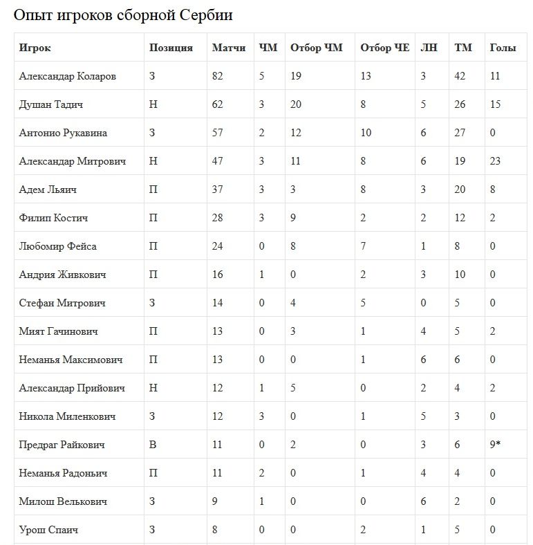 Лидер Коларов и снайпер Митрович. Международный опыт игроков сборной Сербии