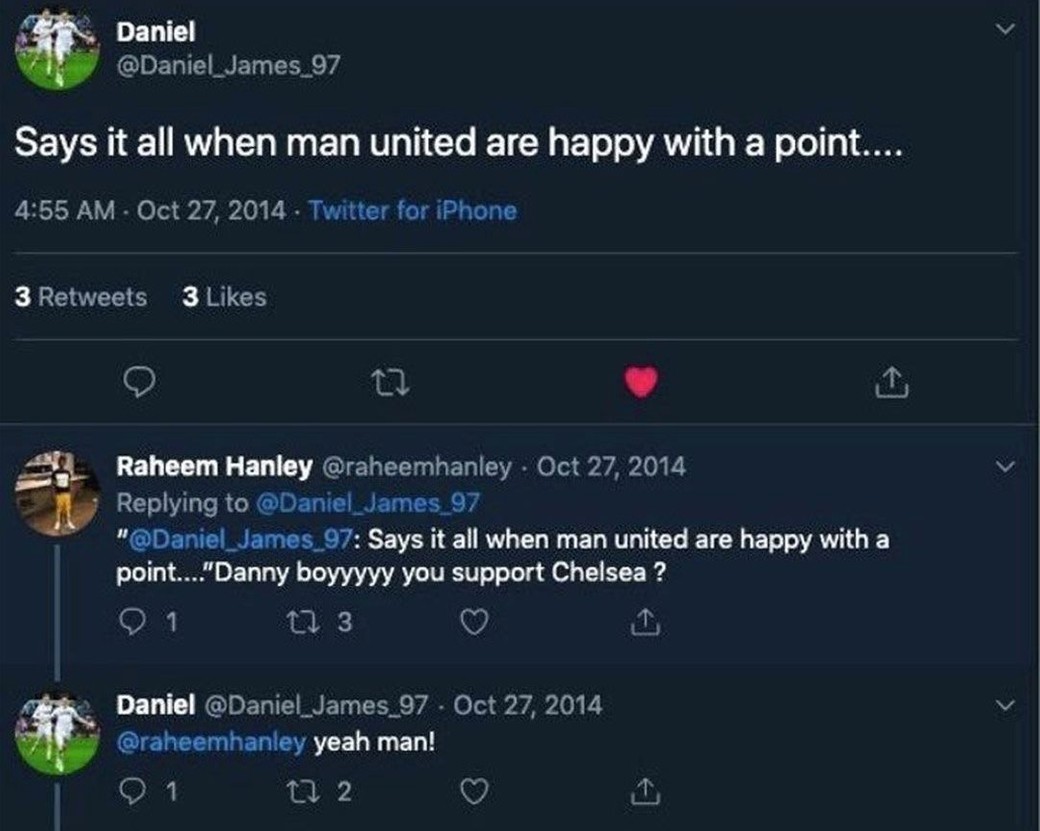 Пользователь Рахим Стэнли в комментариях обратился к Джеймсу с вопросом: «Дэнни, ты поддерживаешь «Челси»?»