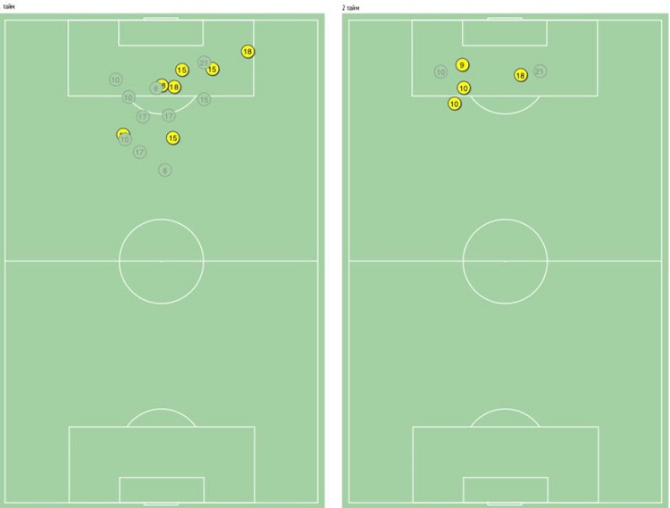 3. Контроль мяча сборной Украины был практически идеален. Почти треть всех пасов команда выполняла вперед, при этом полевые игроки сделали только 12 длинных переводов. Мало было фланговых передач, но тут дело в самой системе игры — ставка была на проникающий пас между линиями. В штрафную площадь мы заходили регулярно — после каждого пятого владения мячом. Почти 40% своих передач футболисты сборной Украины выполняли в одно касание, и это обеспечивало скорость игры. Лидером по быстрому пасу стал Александр Зинченко, который сделал 39 передач в одно касание. В итоге сине-желтые провели лучший матч по точности передач на официальном уровне за последние 10 лет (подсчеты ведутся с 2009 года).