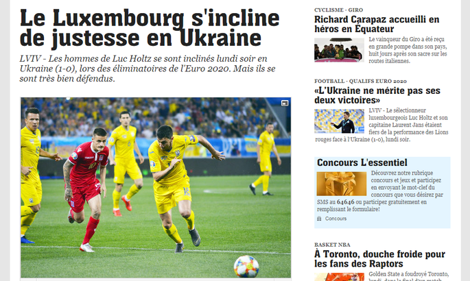 Красноязычное название обзора у этого издания: "Люксембург немного кланяется в Украине. Мужчины Люка Хольца проиграли в понедельник вечером в Украине, но они защищались очень хорошо".